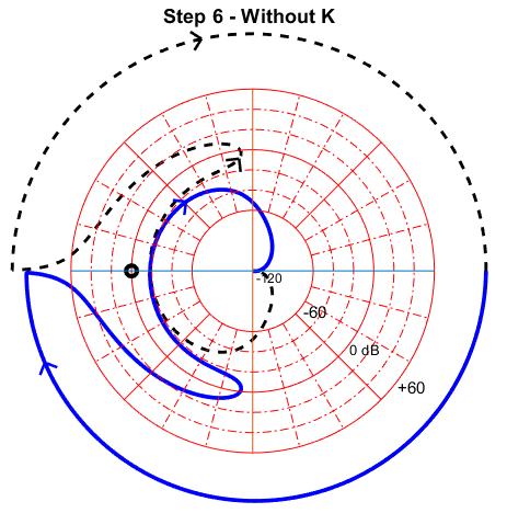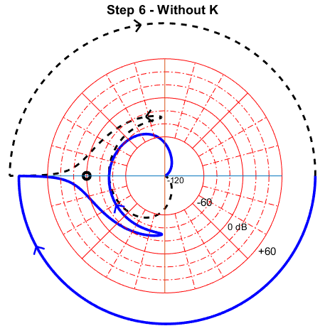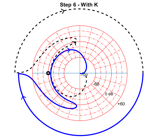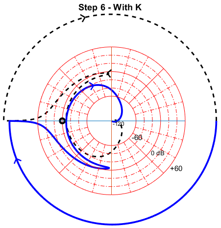 We can observe by comparing the nyqlog plots with and without k that the corner moves nearer to the odB line as desired. Phase margin is also improved. The same can be observed for motor 2:
