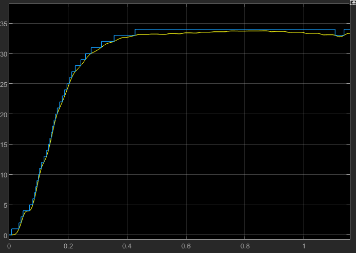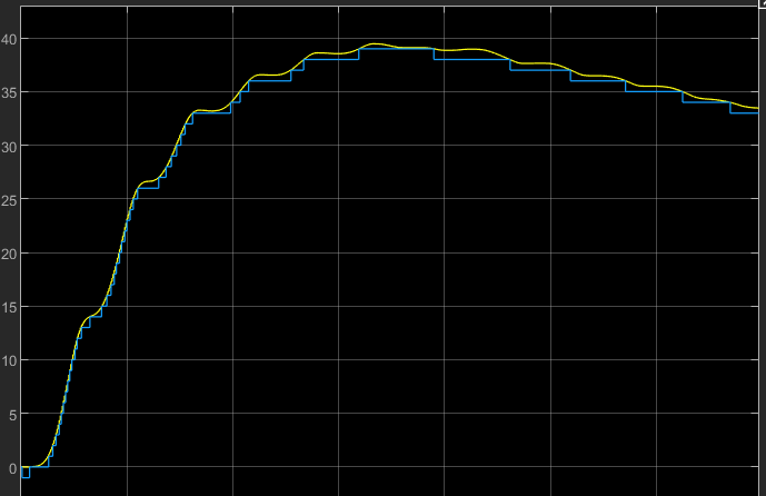 I also noticed that the system was overshooting overall, and observed that since we were flooring the sensor data, the error being sent through the feedback was less than it should have been. In an attempt to correct this, I opted to use the ceiling block instead (switching to this representation in code would be very simple) and it corrected a good portion of the overshoot.