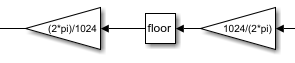 Our sensor has a resolution of 1024 and our microcontroller can only read whole values. The resolution represents how many times the counter will increment per complete revolution of the motor. Therefore, we can convert from radians to our resolution's interpretation of that angle by multiplying by 1023/(2π). Since our microcontroller will only read whole numbers of this value, we must either floor or ceiling this value. Finally we multiply by the inverse to maintain unity gain for the sensor.